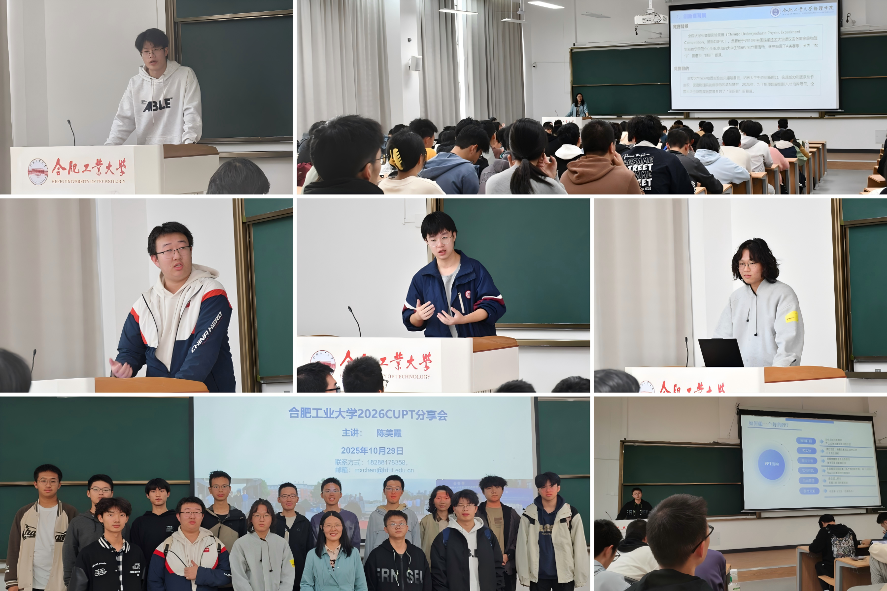 10月29日,由党委学生工作部(处)主办、物理学院承办的第1期学在工大“学习悦享荟”学业指导讲座在翡翠湖校区翠二教101教室举行,活动聚焦全国大学生物理学术竞赛(CUPT)备赛要点,案例分享进行。活动邀请了物理学院创新创业中心及大学物理实验中心副主任陈美霞老师、省赛、华东赛及国赛优秀获奖团队核心成员做分享,吸引全校近300余名本科生参与。