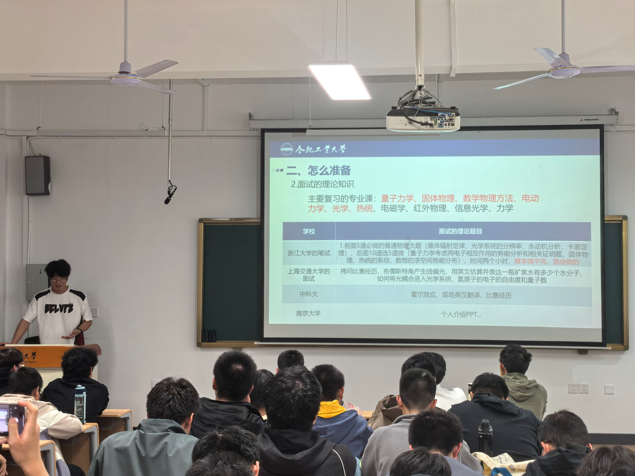 为帮助同学们明确保研方向、理解保研流程、指定保研计划,11月16日晚,物理学院邀请2022级已成功保研名校的三位优秀学生为大一新生分享保研经验。