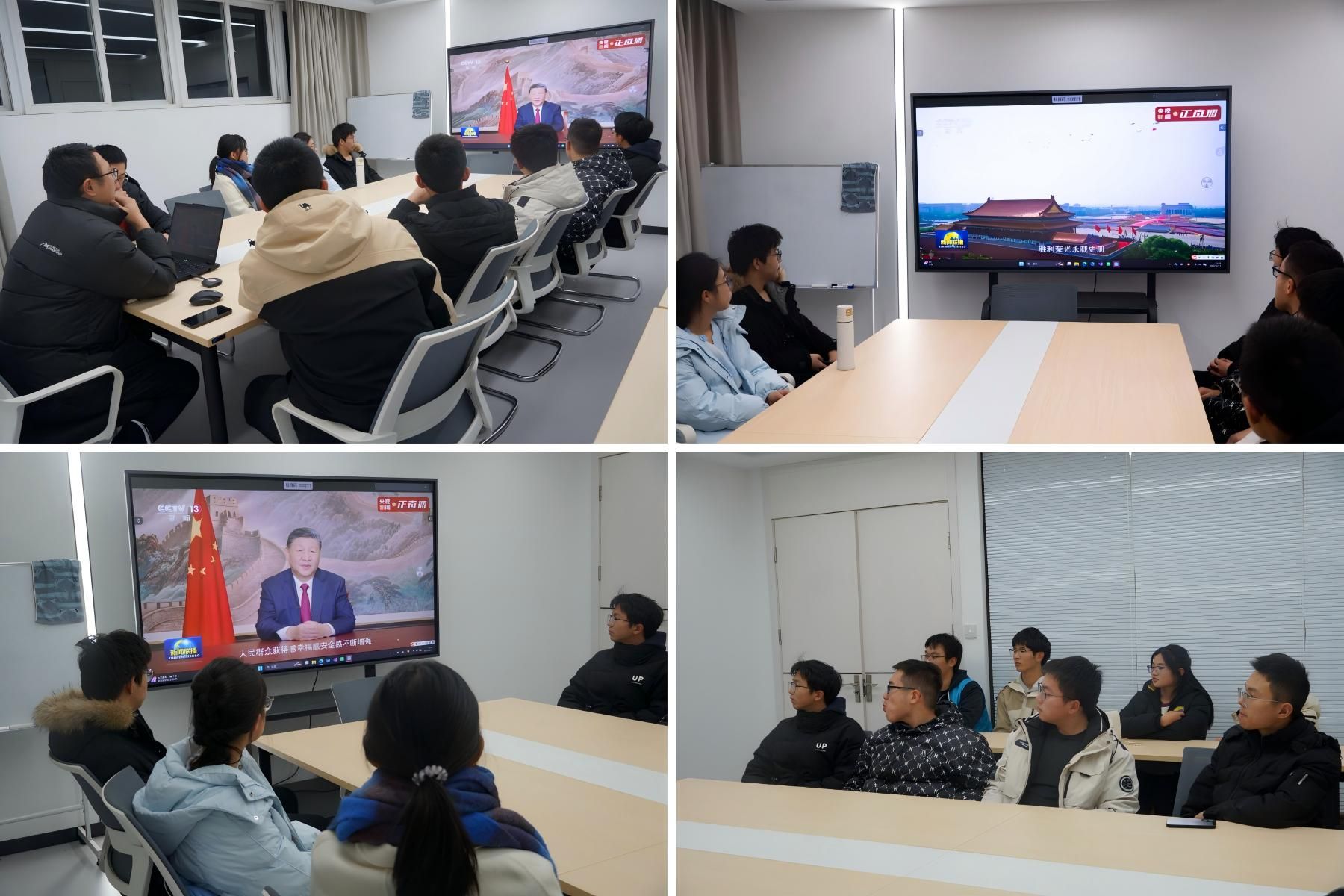 12月31日晚7点,物理学院于翡翠湖校区四号楼学生社区会议室,组织辅导员与20余名学生代表集中观看学习习近平总书记2026年新年贺词。