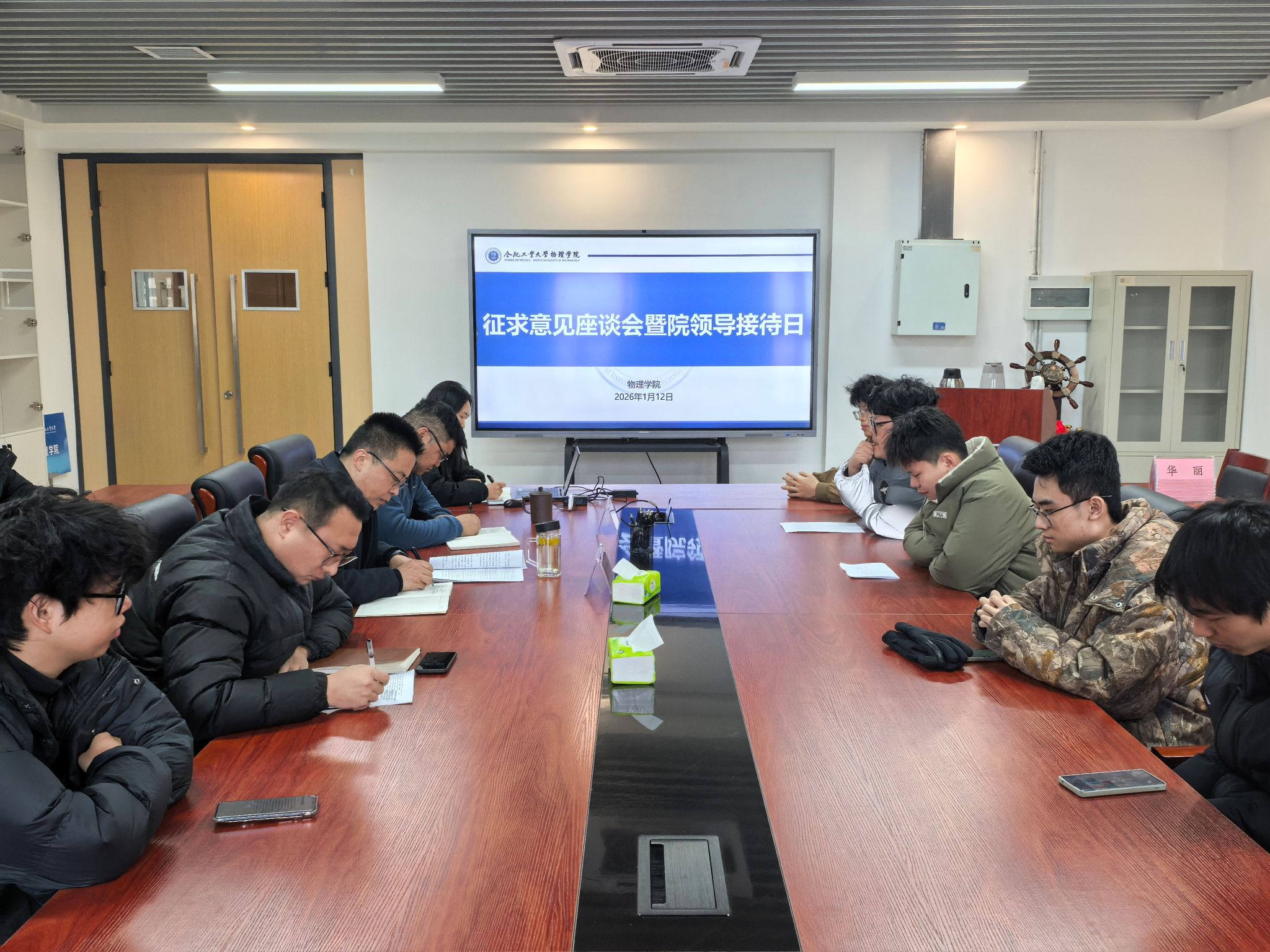 1月12日上午,物理学院于物理楼501会议室组织召开学生意见征集座谈会暨院领导接待日,本研各年级学生代表21名同学参加。