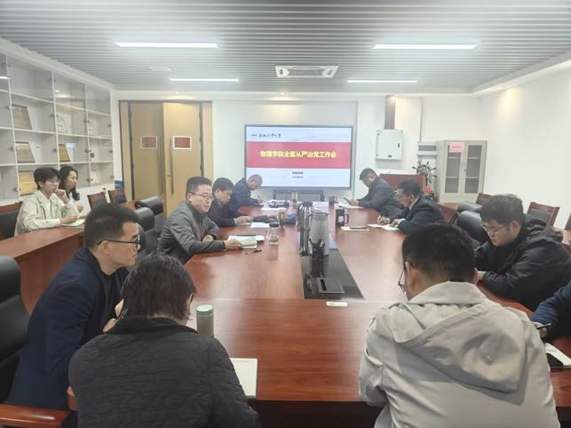 崔健传达了学校2026年全面从严治党工作会议内容和要求,解读了物理学院2026年全面从严治党工作要点,并对学院2026年全面从严治党工作进行了布置,要求各部门按照要求有序开展工作。