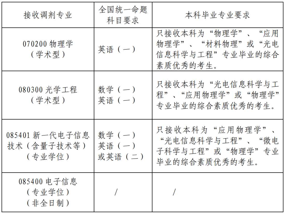 5.已参加过物理学院第一志愿专业复试且复试不合格的,不再接受同一专业调剂。