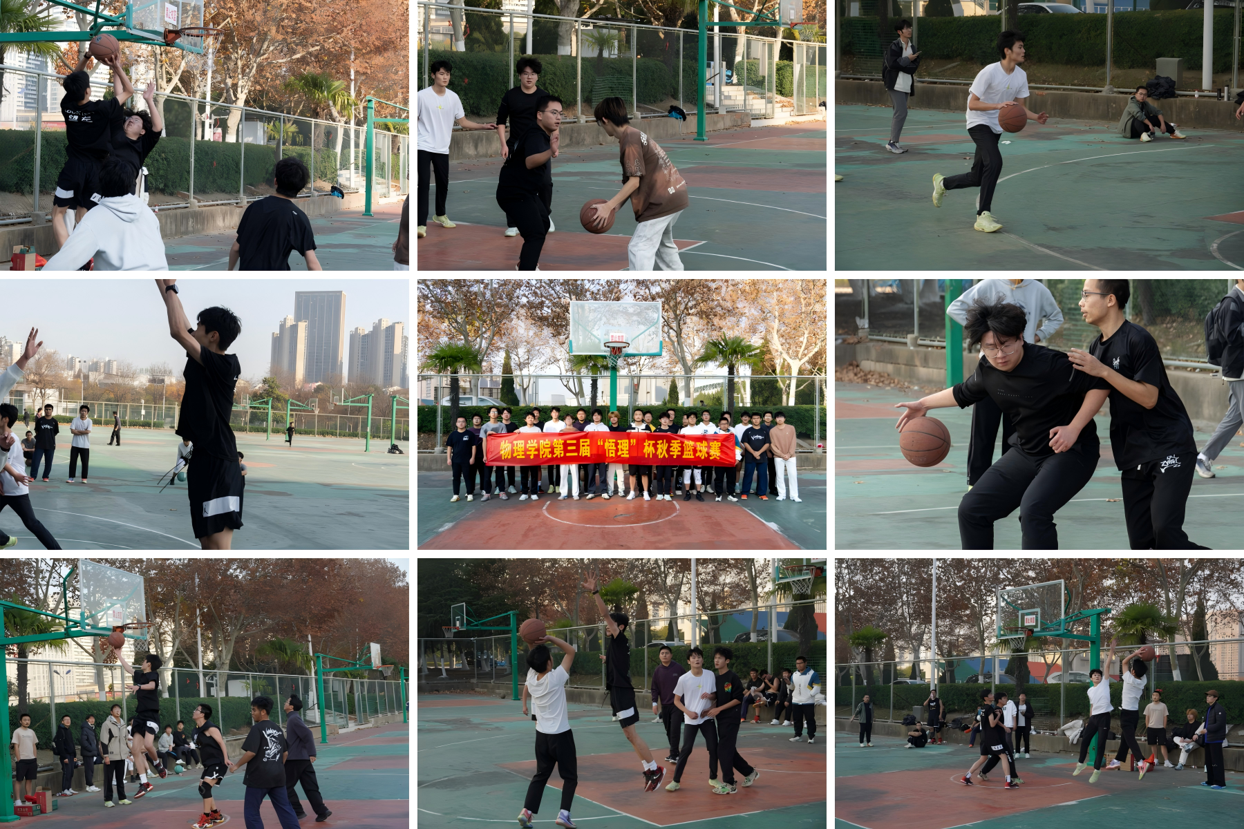 12月6日下午,物理学院在学校篮球场举办了第三届“悟理”杯秋季篮球赛,共计四支队伍参赛。经过了一下午的激烈角逐,最终应用物理学25-1班凭借出色表现,以三战全胜的佳绩勇夺冠军。应物25-2班、量科25班与24级联队分获第二、三、四名。