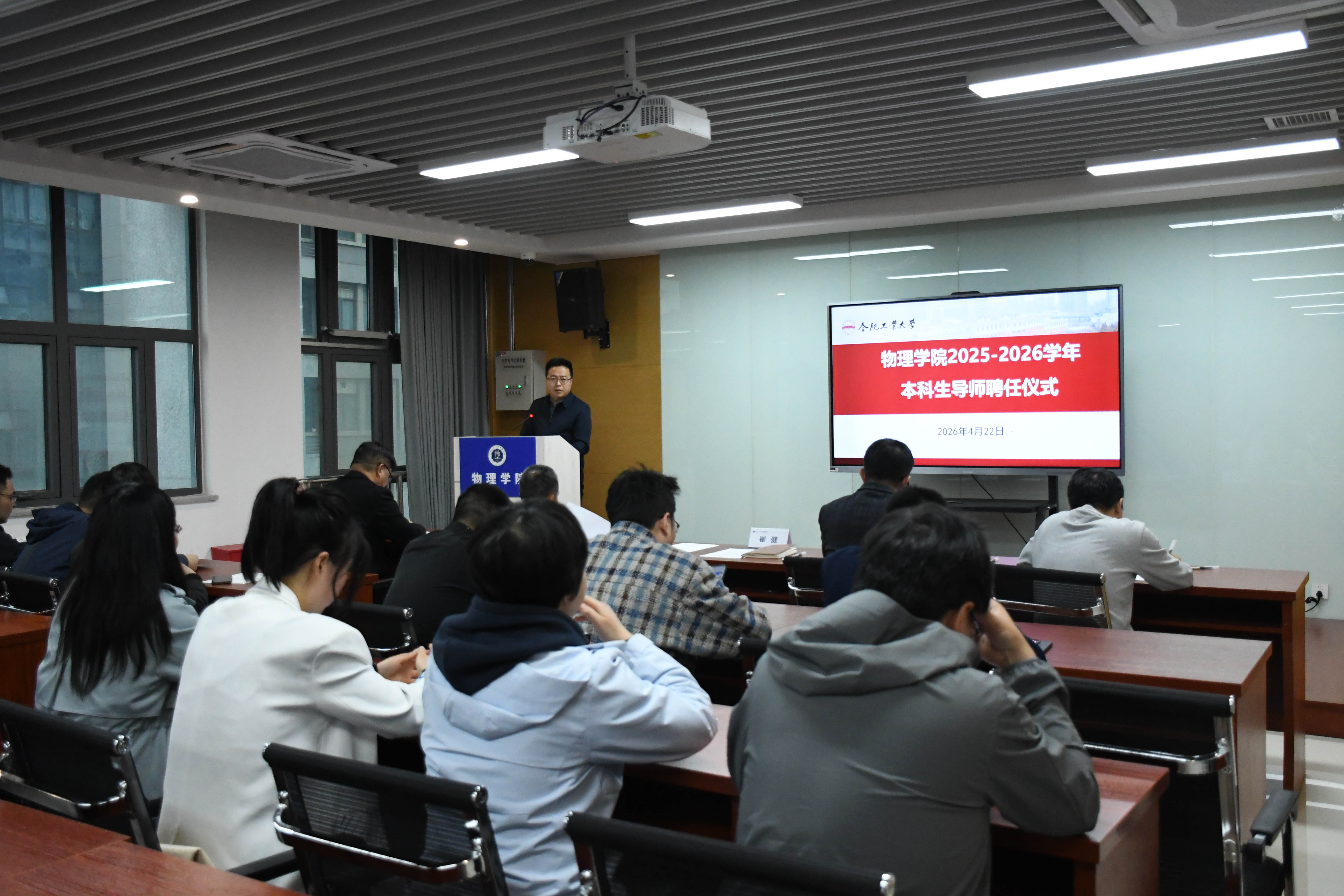 4月22日下午,物理学院2025-2026年度本科生导师聘任仪式在物理楼502会议室举行。学院领导班子及各系负责人、受聘导师、学生代表100余人参加仪式。